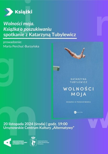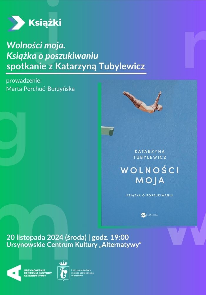 Wolność to pragnienie, ekstaza, lęk i cena, jaką się za nią płaci. Nigdy nie jest pełna, zawsze coś ją ogranicza. Marzymy o niej, uciekamy przed nią, pragniemy i boimy się jej. Wolność to wybór – bywa trudny, a ci, którzy go dokonują, są trochę samotnikami. Tak jak bohaterowie książki Katarzyny Tubylewicz. Wśród nich są osoby znane i zupełnie nie, Polacy i Szwedzi, romantycy poliamoryczni, intelektualiści i artyści. A tematowi wolności pisarka przygląda się z wielu, czasem zaskakujących, perspektyw. Podczas spotkania porozmawiamy o postaciach opisanych w „Wolności mojej”, takich jak Agnieszka Holland, Sławomir Sierakowski, Piotr Ibrahim Kalwas i Andrzej Gryżewski. Zanurzamy się w opowieść o poszukiwaniu wolności, o jej traceniu i ponownym do niej powracaniu, spotykając po drodze także takie postaci, jak Zlatan Ibrahimović, Elżbieta Podleśna, David Lagercrantz, pastorzy Kościoła Szwecji i szwedzka królowa Krystyna.