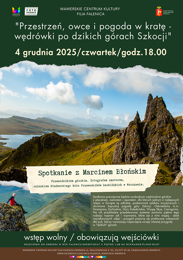 Wykład "Wędrówki po dzikich górach Szkocji" - spotkanie z Marcinem Błońskim w WCK Falenica
