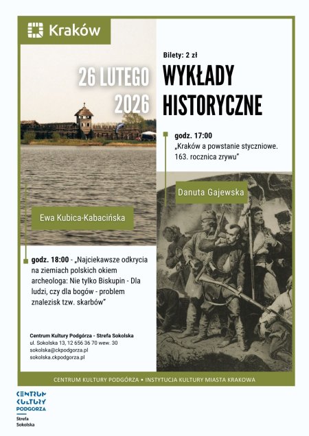 Wykład poświęcony roli Krakowa w wydarzeniach związanych z powstaniem styczniowym, w 163. rocznicę tego jednego z najważniejszych zrywów niepodległościowych w historii Polski. Spotkanie przybliży sytuację miasta w drugiej połowie XIX wieku oraz jego znaczenie jako ośrodka wsparcia politycznego, organizacyjnego i symbolicznego dla sprawy narodowej.