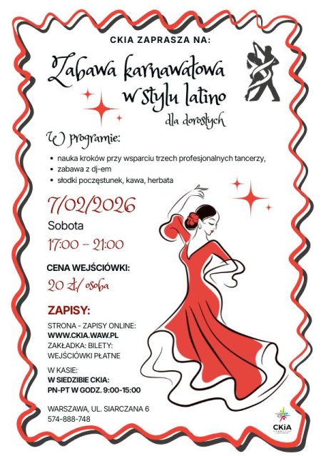 CKiA zaprasza dorosłych na wieczór pełen latynoskich rytmów, ruchu i dobrej energii. Bez presji, bez ocen - za to z muzyką, która sama prowadzi biodra.