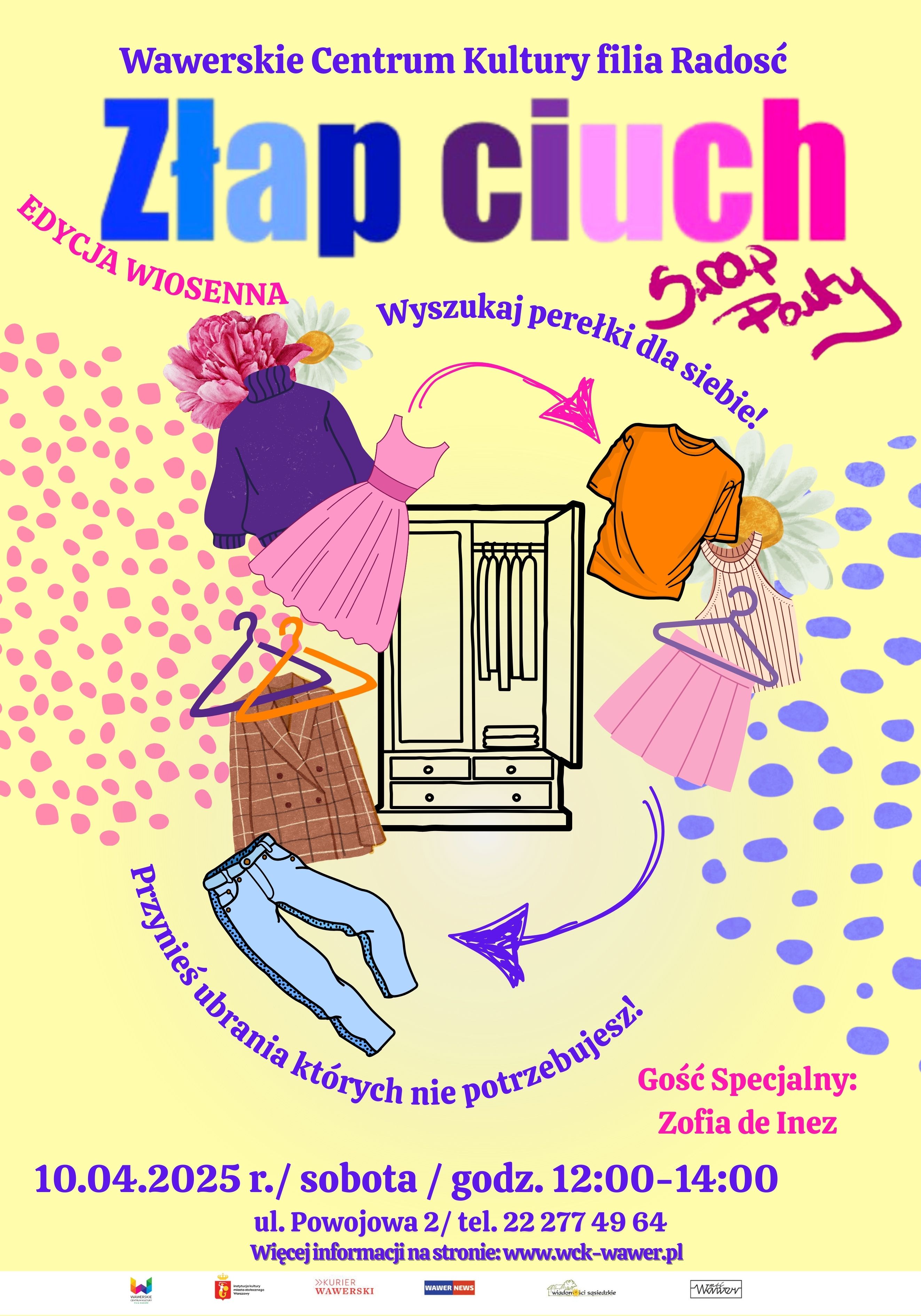 SWAP PARTY, to rodzaj wymiany, w ramach której uczestnicy wymieniają swoje cenne, ale już nieużywane ubrania na ubrania, których będą używać. Zamiany ubrań są uważane nie tylko za dobry sposób na uzupełnienie garderoby, ale także za akt ekologii. Tego typu inicjatywy łącza ludzi wokół wspólnej troski o środowisko i promują twórcze podejście do mody. Spotkanie potrwa od godziny 12:00 do 14:00.