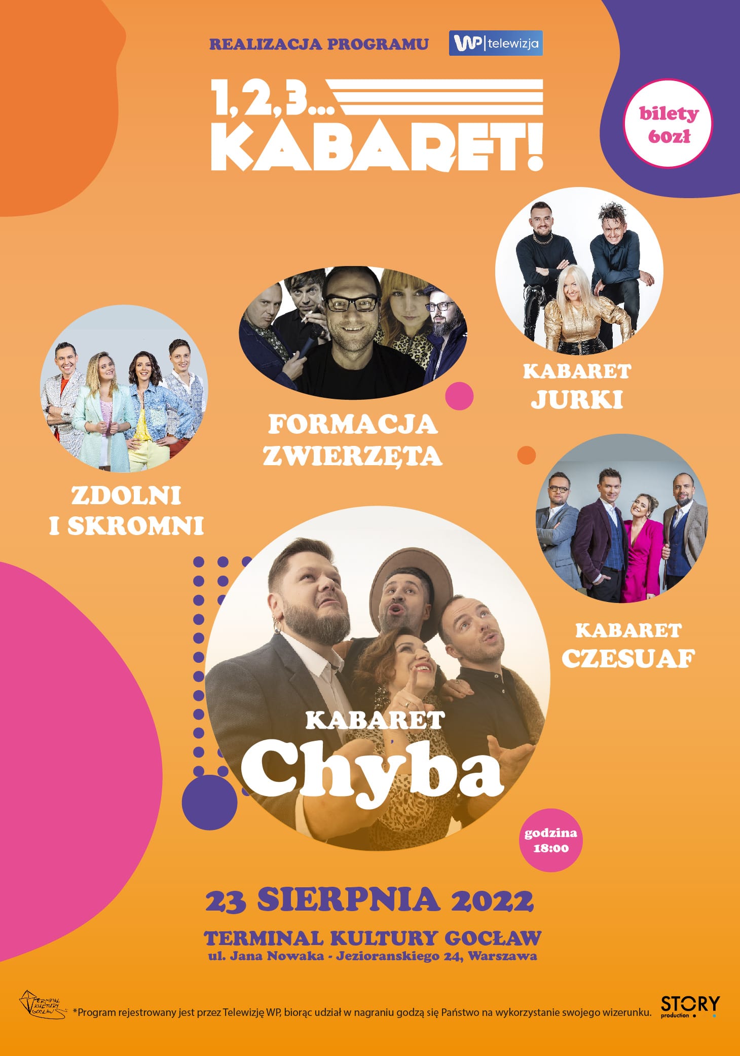 1,2,3... KABARET! to wyjątkowe wydarzenie kabaretowe, które odbędzie się tym razem na scenie Terminalu Kultury Gocław w Warszawie. Premierowe skecze, mieszane składy i oryginalne prowadzenie Kabaretu Chyba z Piotrem Gumą Gumulcem sprawią, że ten wieczór będzie niepowtarzalny!