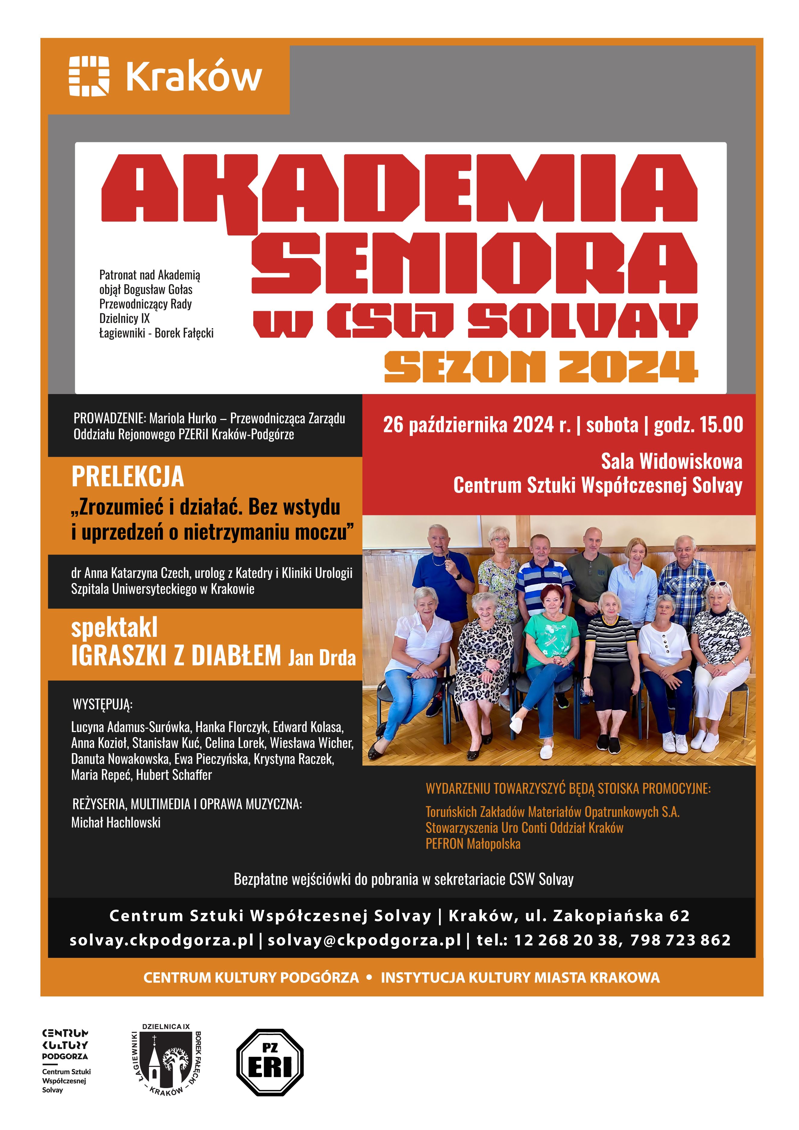 26.10.2024 roku/ sobota, godzina: 15.00 - Sala Widowiskowa Centrum Sztuki Współczesnej Solvay