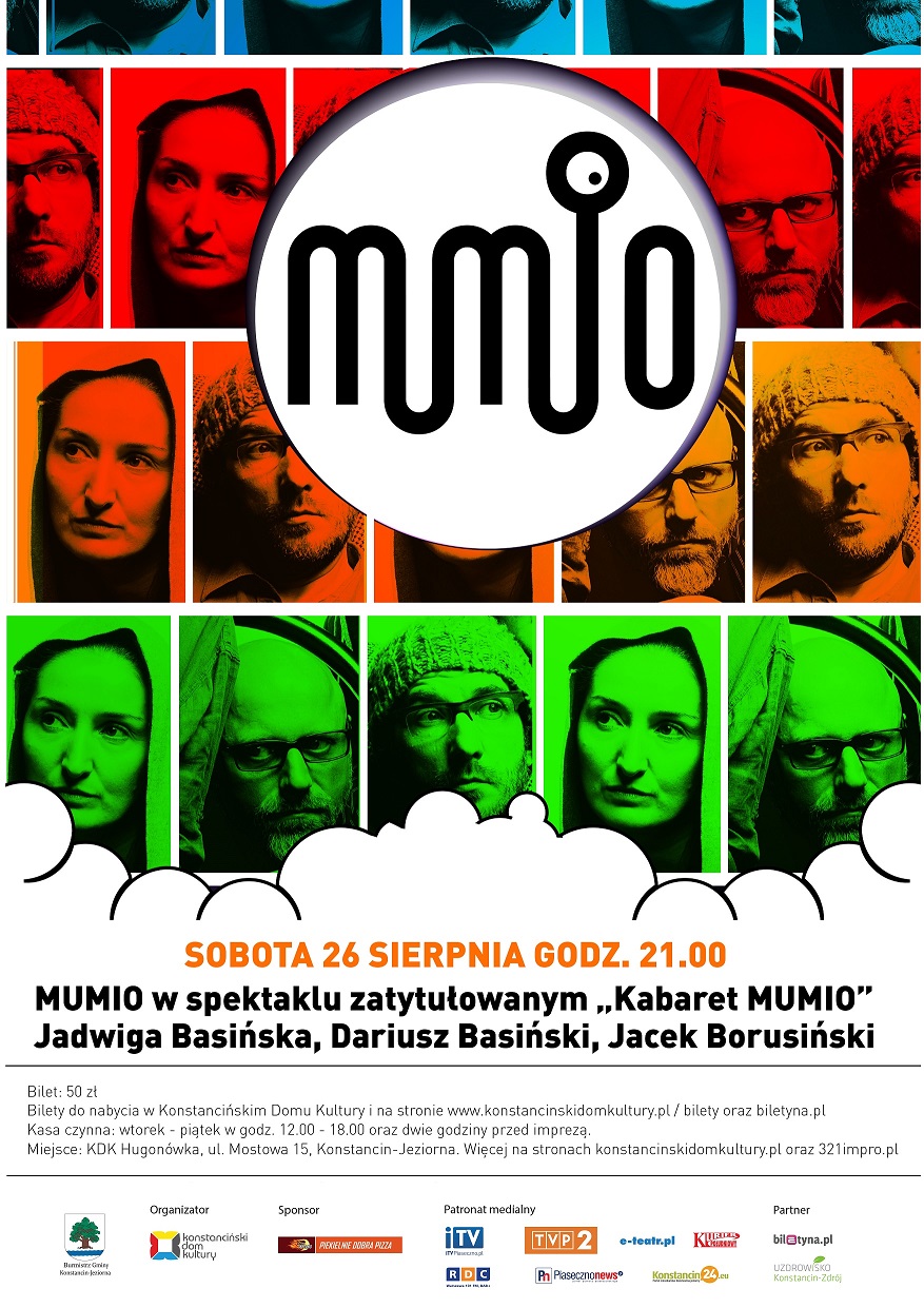 Mumio to sceniczne szaleństwo – inscenizacyjne, literackie, muzyczne. Są przy tym niezwykle konsekwentni w realizowaniu swojej, oryginalnej wizji humoru. Uwielbiają wszelkie ludzkie potknięcia i niezręczności. Nie wyśmiewają ich jednak, ale podchodzą do nich z czułym zainteresowaniem i prezentują w spektaklach przy pomocy doskonałego warsztatu aktorskiego. Aktorzy Jadwiga i Dariusz Basińscy oraz Jacek Borusińskipo doświadczeniach z repertuarem dramatycznym (od Eurypidesa, Szekspira, po Jarry’ego, Buchnera, Nabokowa czy Ghelderode) stworzyli projekt autorski. Wtedy, jeszcze jako Teatr Epty-a wystawili w 1998 roku spektakl pt. „Kabaret Mumio”. Grupa wkrótce po debiucie, została nazwana jednym z największych odkryć sceny polskiej. Mumio zostało nagrodzone m.in. Teatralną Nagrodą im. Leona Schillera, Nagrodą ZASP oraz dwukrotnie Wiktorem. W drugim spektaklu do zespołu dołączył Jarosław Januszewicz, a obecnie skład poszerzony jest o multiinstrumentalistę Tomasza Drozdka. Na 321 Impro Festiwalu zobaczymy spektakl „Kabaret Mumio”, który wciąż znajduje nowych widzów, choć został wystawiony już blisko 800 razy, nie tylko w Polsce, lecz także w wielu krajach na świecie. Jednak każde przedstawienie jest jedyne w swoim rodzaju, ponieważ grupa lubi improwizować i zaskakiwać widzów. Owa nieprzewidywalność tego, co za chwilę może zdarzyć się na scenie powoduje gotowość widzów do podjęcia ryzyka zobaczenia, tylko pozornie tego samego, spektaklu wielokrotnie. Dorobek oraz specyfika pracy zespołu, pewna elastyczność i zdolność do kreacji na żywo, zaowocowały w 2005 podpisaniem kontraktu na serię bezprecedensowych, przebojowych i niezwykle zabawnych reklam telewizyjnych dla firmy Polkomtel. Reklamy te były wielokrotnie nagradzane za walor artystyczny, ale również otrzymały dwukrotnie nagrodę Effi za skuteczność w reklamie. Najlepiej o grupie świadczą słowa legendarnego Jeremiego Przybory: „Mumio – zachwyciło mnie całkowitą oryginalnością. (…) Tam wszystko jest nowe, „odsiebne”, że tak powiem, i znakomite.”