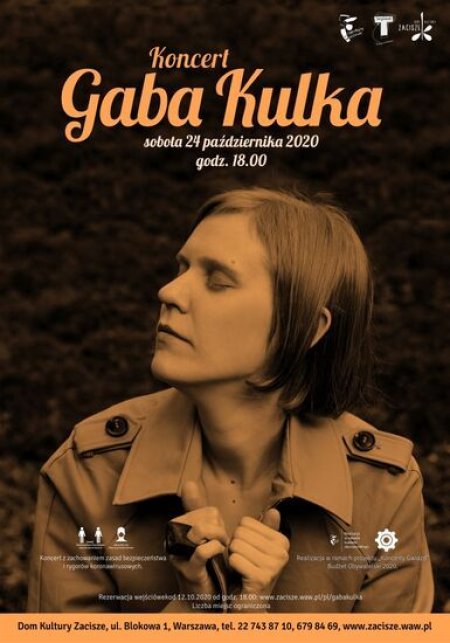 Zapraszamy na koncert Gaby Kulki na Zaciszu. Wokalistka, pianistka i autorka piosenek, wystąpi z zespołem, z którym gra nieprzerwanie od ponad dekady: kontrabasistą Wojtkiem Traczykiem i perkusistą Robertem Raszem. Stęsknieni za graniem muzycy sięgną po utwory z albumu "Hat, Rabbit" i zaprezentują nowe wersje starych piosenek. Nie zabraknie numerów z płyt "Kruche" i "The Escapist", a także utworów, które na oficjalne wydanie jeszcze czekają.