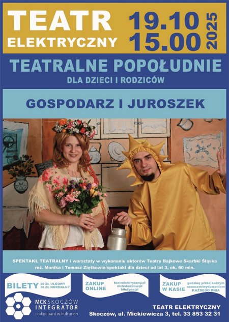 Miejskie Centrum Kultury "Integrator" zaprasza na kolejny spektakl w ramach cyklu Teatralne Popołudnie dla dzieci i rodziców do Teatru Elektrycznego w Skoczowie.