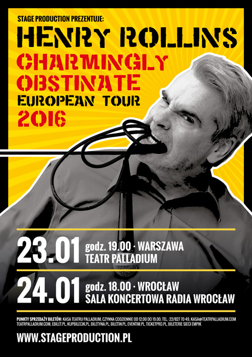 Wyjątkowość kariery Henrego Rollinsa wynika z intensywnie punk rockowych korzeni, szlifów zdobytych w Black Flag i Henry Rollins Band połączonych z doświadczeniami dziennikarskimi oraz występów "spoken word". Obecnie Rollins, dodatkowo jeszcze aktor, gospodarz programów radiowych i telewizyjnych ogłasza szczegóły pierwszej od 2012 roku europejskiej trasy swoich "Talking Shows".