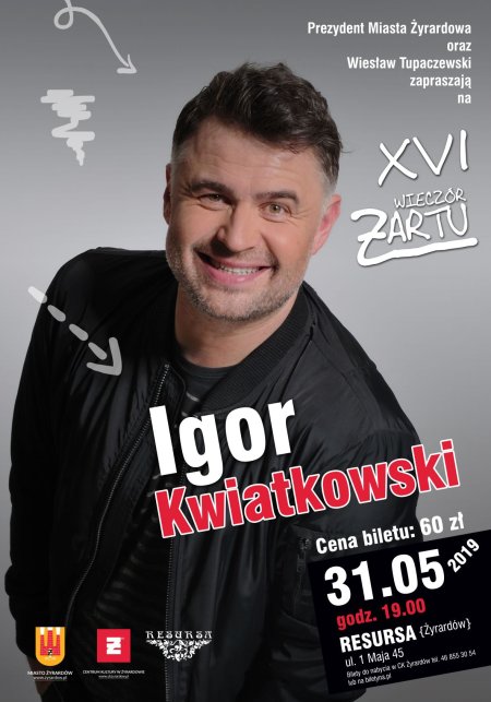 Zapraszamy na XVI Wieczór Żartu z gościnnym udziałem Igora Kwiatkowskiego– z dawnego Kabaretu PARANIENORMALNI, który zaskoczy Was swoim niepowtarzalnym urokiem, błyskotliwą ripostą i niezrównanym talentem.