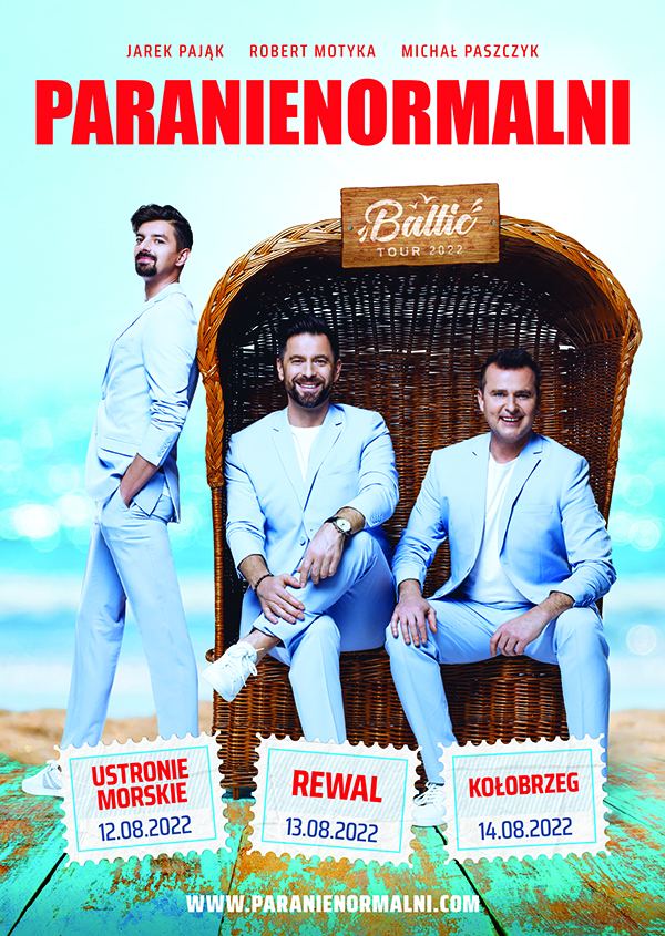 BALTIC TOUR 2022 Pogoda może nie dopisać, ale wielkie emocje po występie kabaretu Paranienormalni to coś całkowicie naturalnego. Dwie godziny wyśmienitej zabawy, gwarancja bólu brzucha i policzków - od śmiechu oczywiście. Nowy program kabaretu stanowią premierowe skecze z udziałem publiczności. Tylko podczas naszych występów będziesz mieć okazję do spoliczkowania Michała Paszczyka. To przejdzie do historii! BALTIC TOUR w wykonaniu kabaretu Paranienormalni to spotkanie z 18 letnim doświadczeniem scenicznym, zbiorem najlepszych historii przekładanych solo występami naszego trio. Bądźcie z nami!