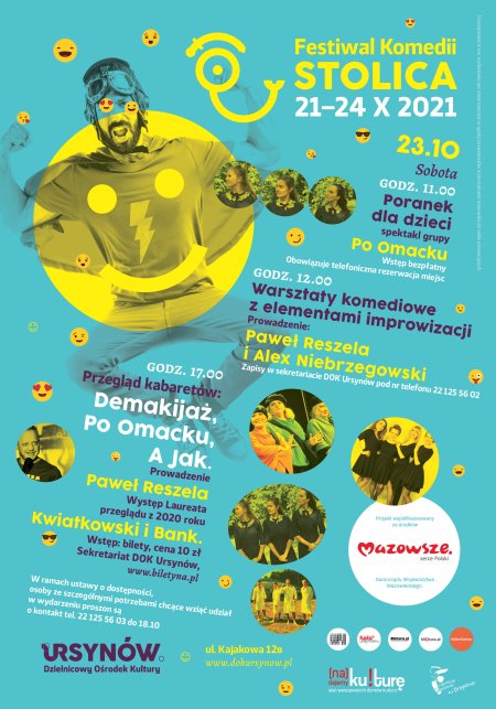 Trzeci dzień Festiwalu Komedii STOLICA 2021. O godz. 17.00 rozpoczynamy przeglądem kabaretów. Wystąpią Kabaret Demakijaż, Kabaret A jak i Kabaret PO Omacku. Gwiazdą wieczoru będzie ubiegłoroczny laureat przeglądu, Kabaret Kwiatkowski i Bank. Całe wydarzenie poprowadzi Paweł Reszela.
