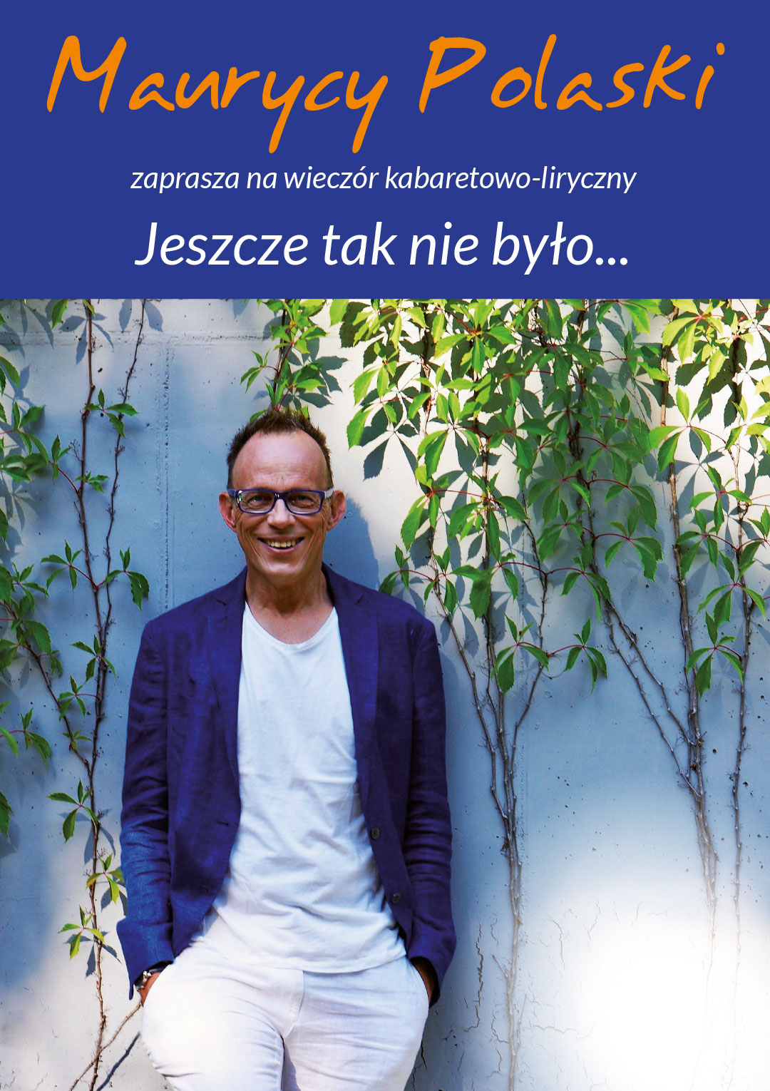 Znany i lubiany Maurycy Polaski zaprasza na urocze spotkanie w nastroju liryczno – kabaretowym, pt. „Jeszcze tak nie było”. Nieczęsto zdarza się, żeby skutecznie połączyć teksty i piosenki kabaretowe z delikatną nutką liryki. Ale tym razem efekt jest wyborny. Ten program traktuje przede wszystkim o miłości. Oglądając go, uświadomicie sobie Państwo za jednym posiedzeniem, ileż ona ma niezdiagnozowanych aspektów! Przedstawiony zostanie głównie męski punkt widzenia. A to z tej prostej przyczyny, że na scenie pojawi się ON.