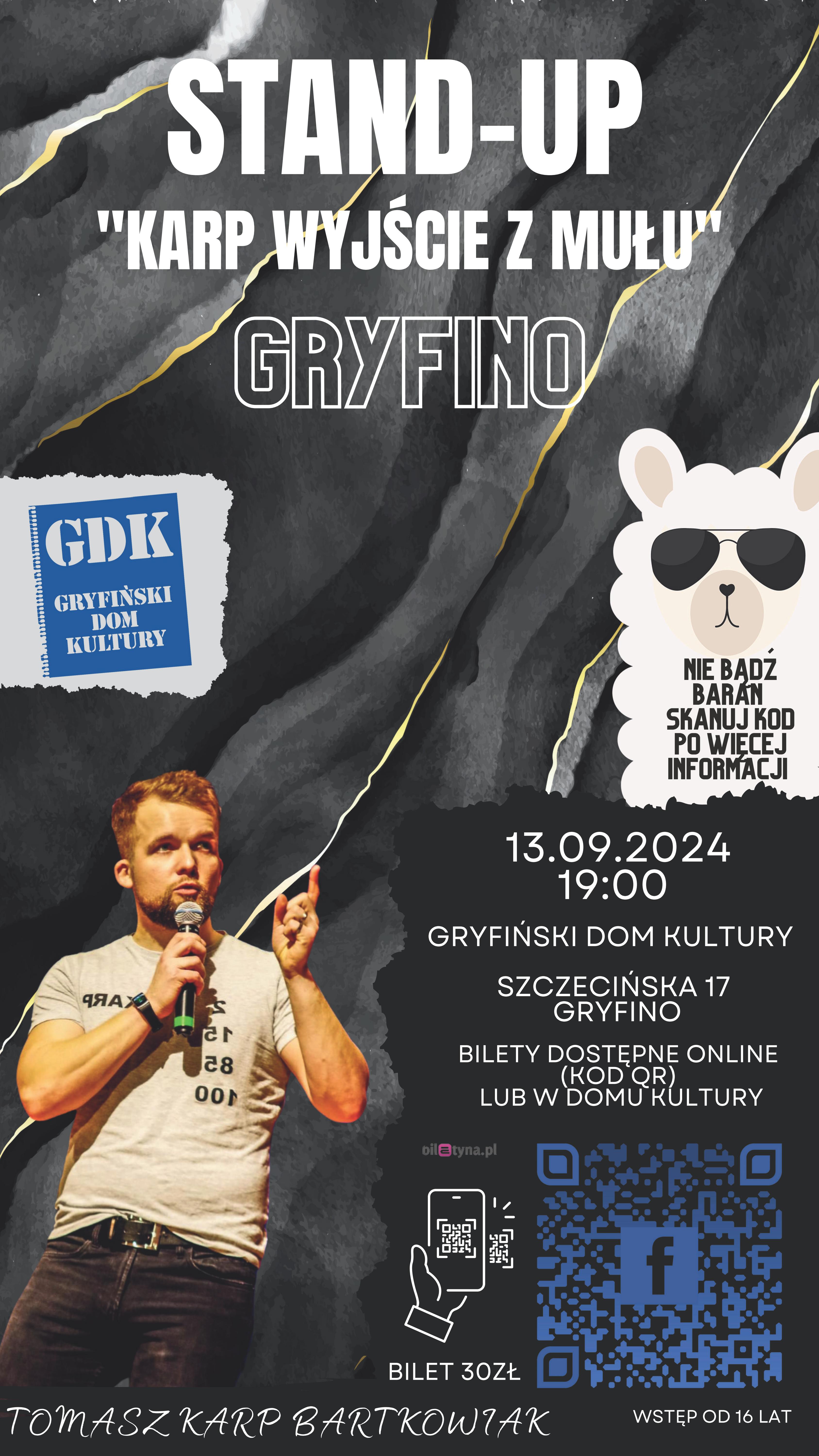 Stand up Tomasza Bartkowiaka w Gryfinie w piątek, 13 września 2024. Start o godz. 19:00