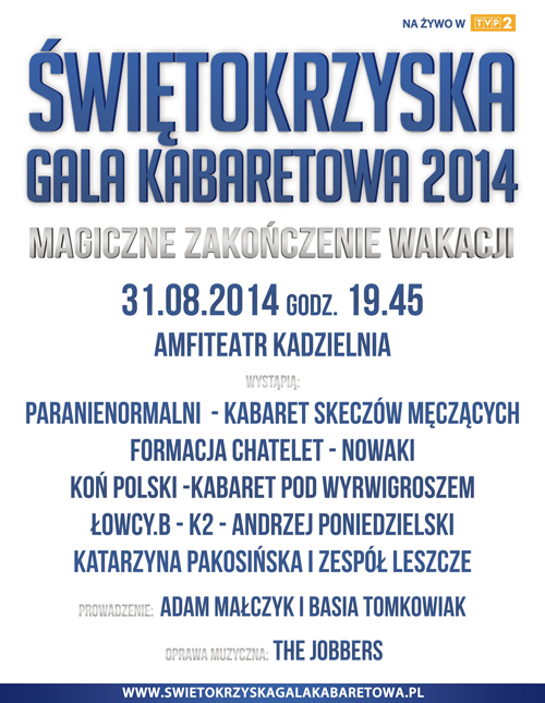 31 sierpnia ( niedziela) – Świętokrzyska Gala Kabaretowa - LIVE TVP2