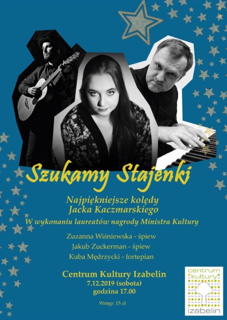 Zapraszamy na koncert, podczas którego usłyszymy najpiękniejsze kolędy Jacka Kaczmarskiego w wykonaniu laureatów nagrody Ministra Kultury - Zuzanny Wiśniewskiej i Jakuba Zuckerman'a - śpiew oraz Kuby Mędrzyckiego przy fortepianie.