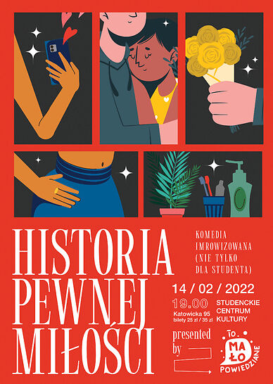 „Historia pewnej miłości” to komedia improwizowana, w której staramy się odpowiedzieć na pytanie: „Co by było z tą miłością, gdyby…”. Jaka to będzie historia? Co się wydarzy? O tym zdecydujemy wspólnie z publicznością. Zapraszamy więc nie tylko zakochanych, ale każdego, kto kocha słuchać i tworzyć opowieści.