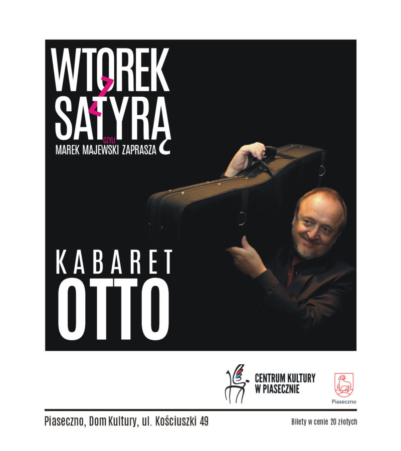 Wtorek z satyrą, czyli Marek Majewski zaprasza, a gościem będzie Kabaret OT.TO. Są jednym z polskich kabaretów eksploatujących inne niż polityka rejony absurdu. Ceniony jest za swoją muzykalność i bezpośredni kontakt z widzami.