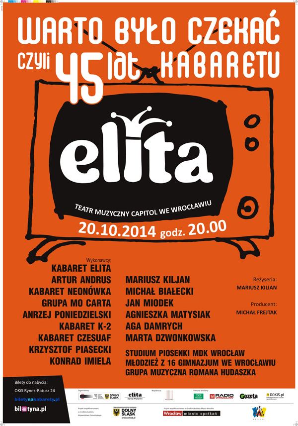 Impreza kabaretowa w formie gali z okazji obchodów 45 lat pracy twórczej Kabaretu Elita tworzonego przez: Stanisława Szelca, Leszka Niedzielskiego i Jerzy Skoczylas. W programie zaprezentowane zostaną największe przeboje z dorobku kabaretu. W trakcie imprezy wystąpią: Kabaret Elita, Artur Andrus, Kabaret Neonówka, Grupa Mo Carta, Andrzej Poniedzielski, Kabaret K-2, Kabaret Czesuaf, Krzysztof Piasecki, Mariusz Kiljan, Konrad Imiela, Jan Miodek, Agnieszka Matysiak, Aga Damrych, Marta Dzwonkowska.