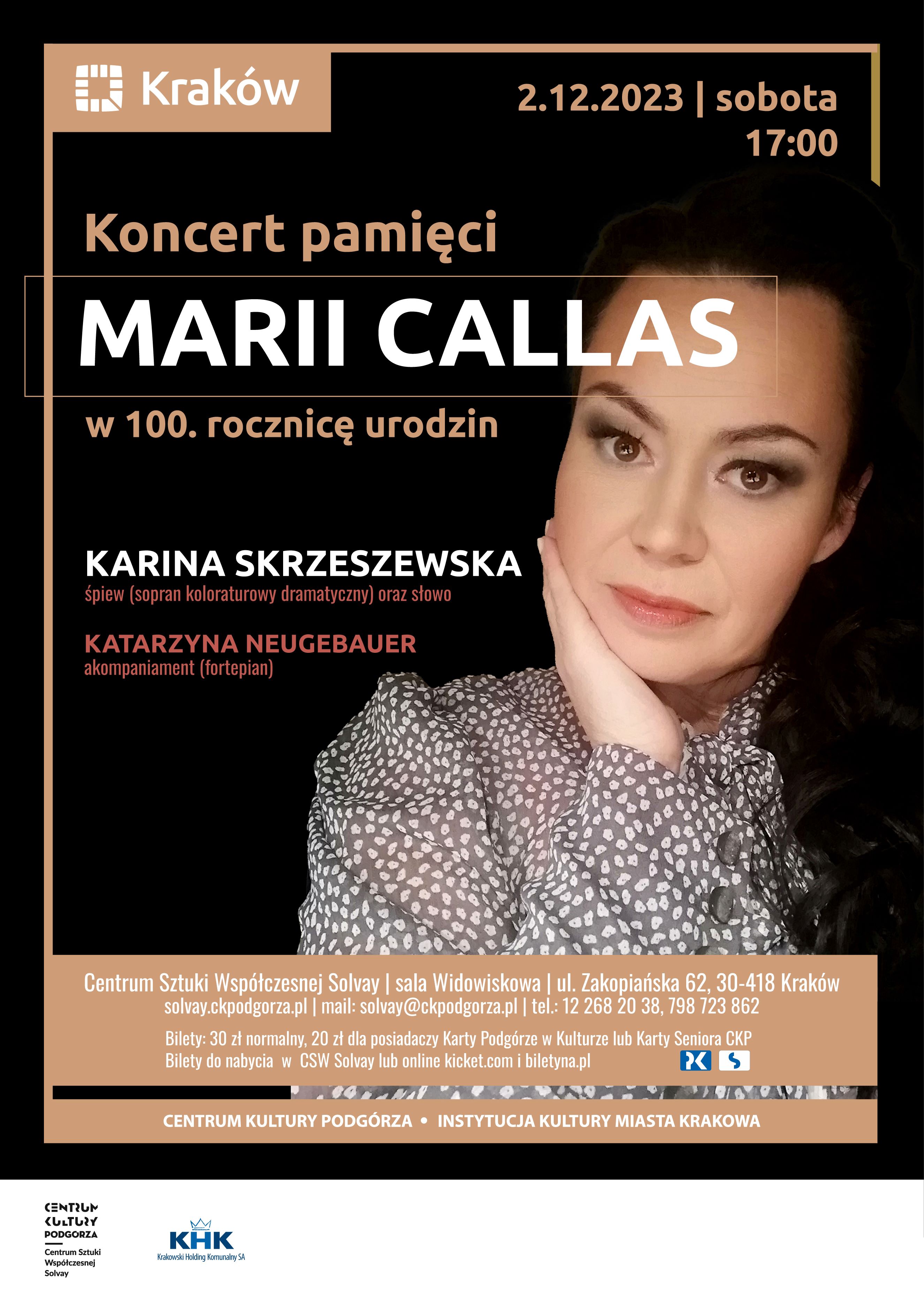 02.12.2023/sobota, godz. 17.00 – Koncert pamięci Marii Callas-w 100. Rocznicę urodzin