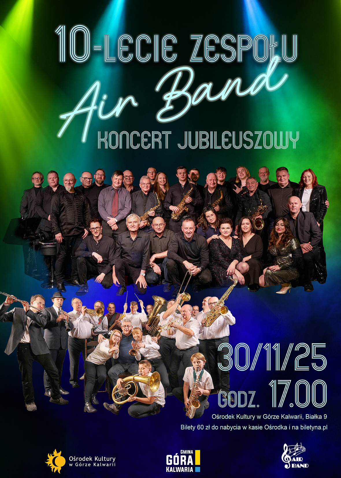 Już 30 listopada zapraszamy do Ośrodka Kultury w Górze Kalwarii na koncert z okazji 10-lecia zespołu AIR BAND!