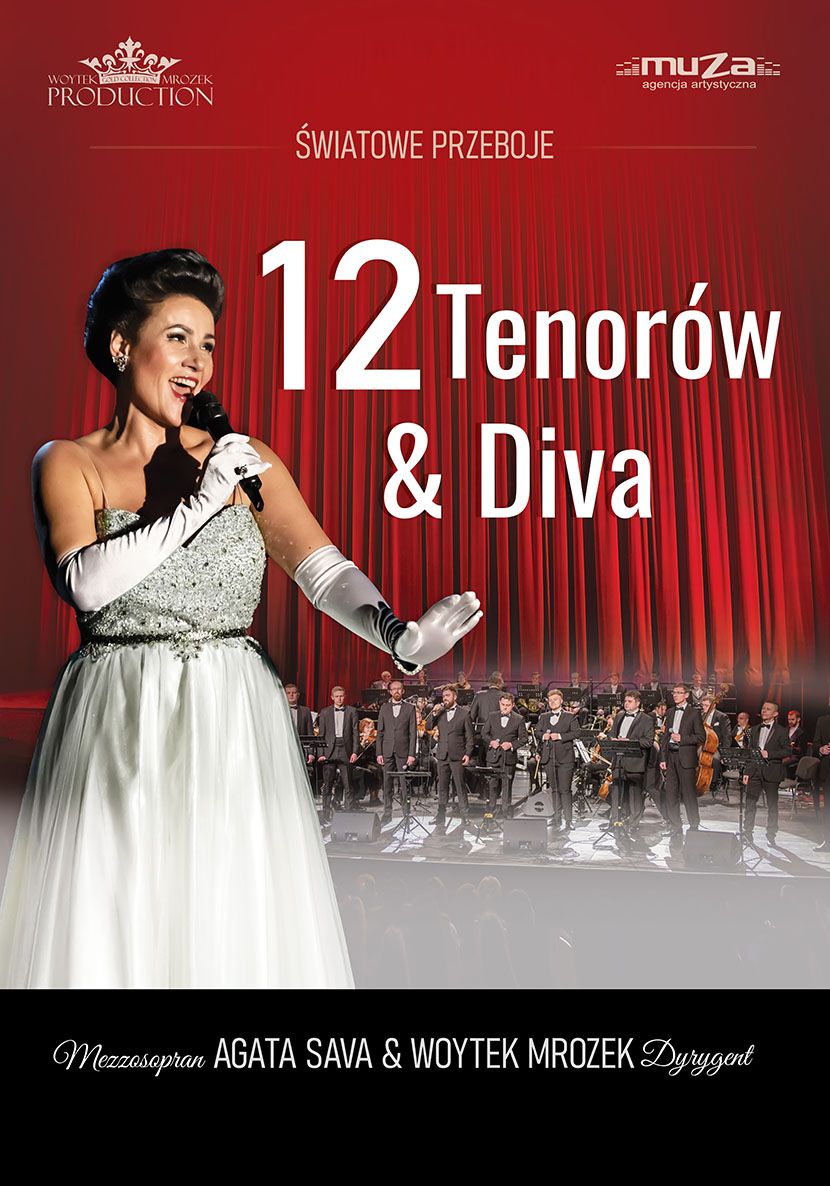12 Tenorów & Diva to prawdziwa uczta dla zmysłów - na jednej scenie 12 arcyzdolnych i przystojnych Tenorów, a crème de la crème tego wspaniałego koncertu - utalentowana i przepiękna Diva Agata Sava. Podczas koncertu usłyszymy wybitne kompozycje pod batutą Maestro Woytka Mrozka w wykonaniu Woytek Mrozek Chamber Orchestra.