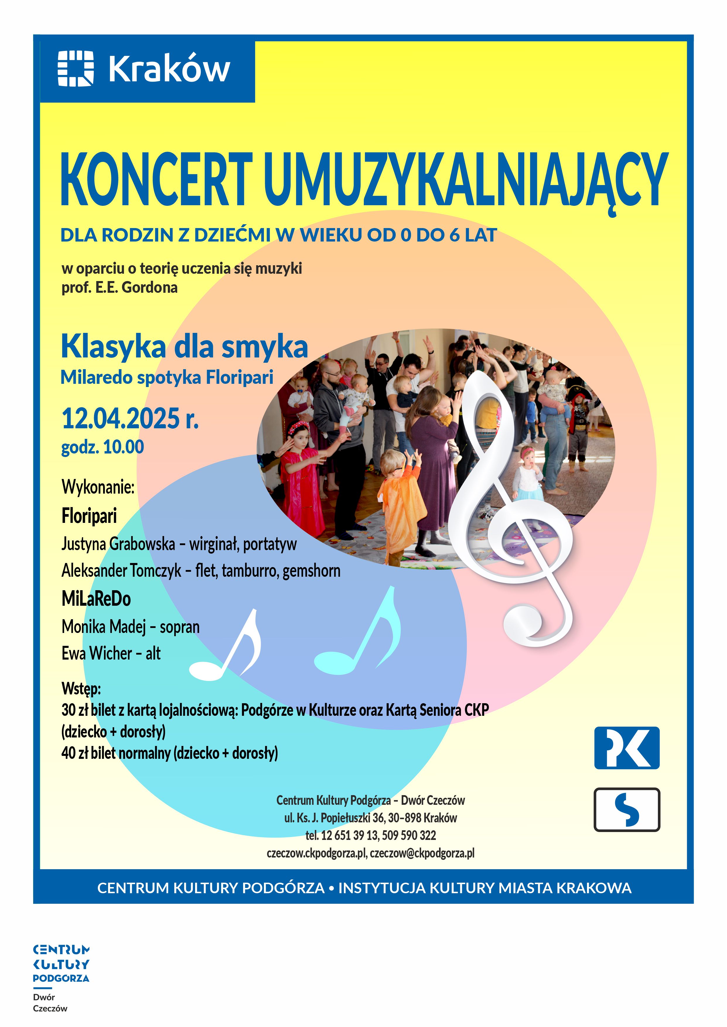 Zapraszamy na koncert Gordonowski „Klasyka dla smyka. Milaredo spotyka Floripari", który odbędzie się w sobotę 12 kwietnia 2025 roku, o godzinie 10.00 w Dworze Czeczów.