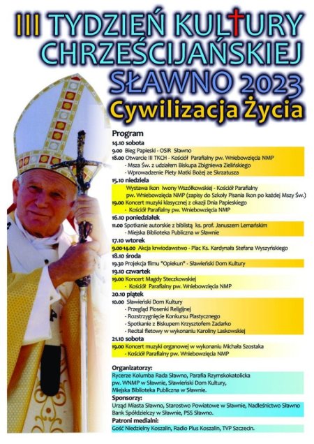 W ramach III Tygodnia Kultury Chrześcijańskiej zaplanowano m.in. koncert muzyki organowej w wykonaniu Michała Szostaka, koncert Magdy Steczkowskiej, projekcje filmu „Opiekun” czy autorskie spotkanie z biblistą ks. prof. Januszem Lemańskim