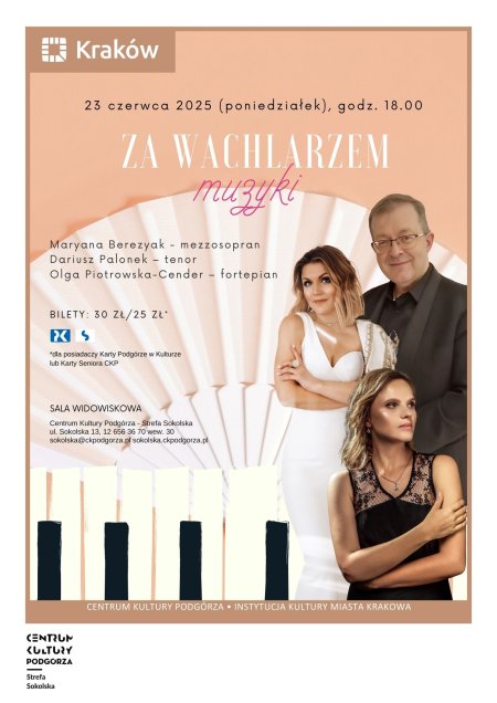 Wystąpią: Maryana Berezyak (mezzosopran), Dariusz Palonek (tenor), Olga Piotrowska-Cender (fortepian). W repertuarze arie i pieśni z oper oraz musicali.
