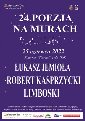 W oczekiwaniu na koniec przebudowy dzierżoniowskich plantów- miejsca w którym „Poezja na Murach” gości tradycyjnie od ponad 20 lat, w tym roku zapraszamy Państwa do Kinoteatru „Zbyszek”.