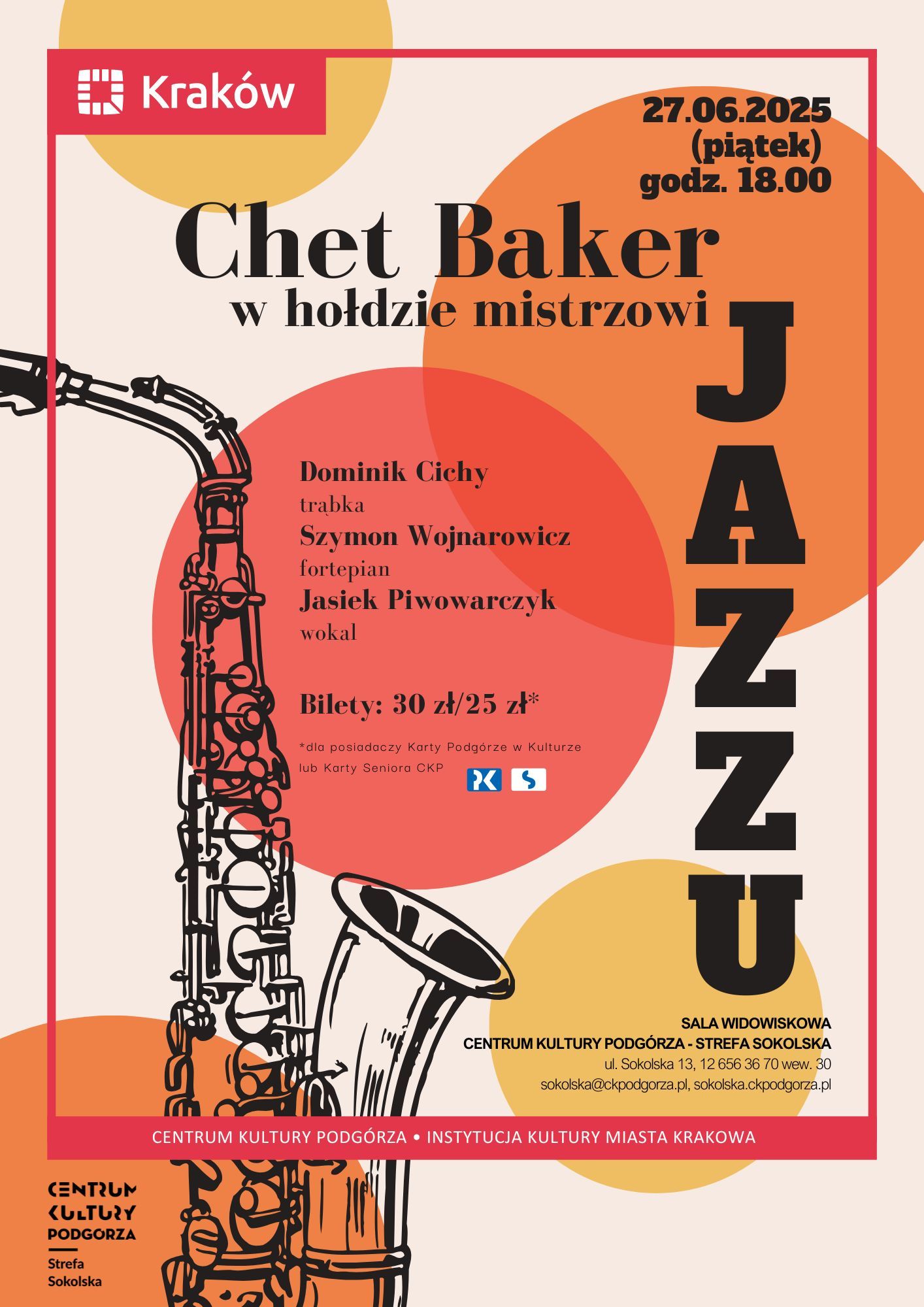 Wieczór pełen emocji, nastroju i muzycznej klasy – zapraszamy na koncert dedykowany jednemu z największych artystów światowego jazzu – Chetowi Bakerowi. Trębacz, wokalista, ikona lat 50. i 60., znany ze swojego subtelnego stylu gry i niezwykłej wrażliwości muzycznej, do dziś inspiruje kolejne pokolenia muzyków.