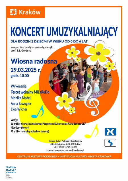 Zapraszamy na koncert Gordonowski "Wiosna radosna" w wykonaniu w wykonaniu tercetu MiLaRedo, który odbędzie się w sobotę 29 marca 2025 r. o godz. 10.00 w Dworze Czeczów.