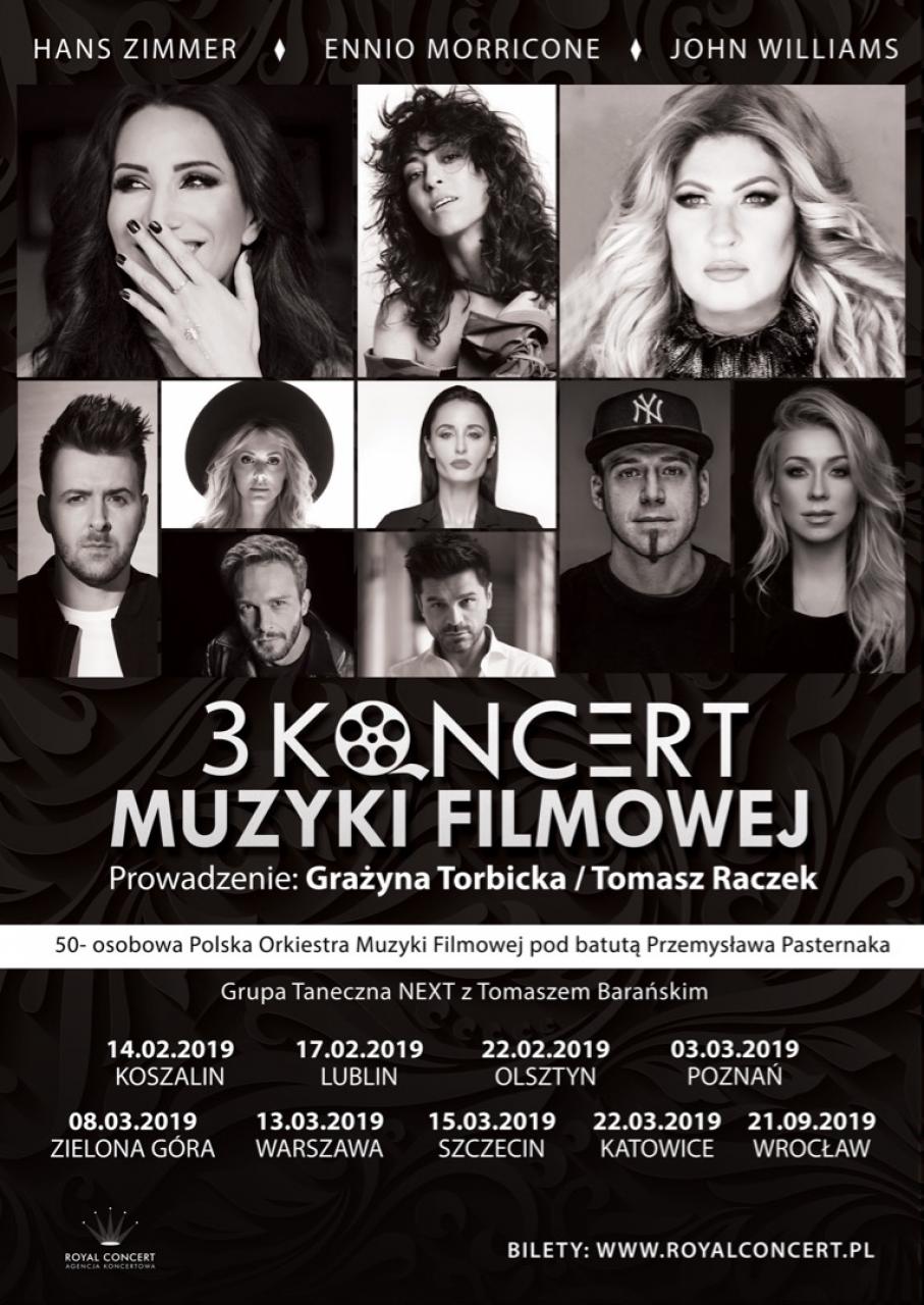 Po ogromnym sukcesie pierwszej i drugiej edycji „Koncert Muzyki Filmowej”, już w tym roku trzecia edycja tej niezwykłej produkcji koncertowej, gdzie będzie 30 nowych utworów, Multimedia oraz tancerze. Jeszcze większa scena, jeszcze więcej efektów specjalnych, jeszcze więcej artystów. Znamy już nazwiska wszystkich Artystów, którzy wezmą udział w 3. Koncert Muzyki Filmowej. Na scenie usłyszymy takie gwizdy jak: Justyna Steczkowska, Natalia Kukulska, Kasia Cerekwicka, Agata Nizińska, Kasia Moś, Tomasz Tomson Lach, Grzegorz Hyży, Sławek Uniatowski, Łukasz Zagrobelny, Beata Kozidrak – Gość Specjalny oraz Polską Orkiestraę Muzyki Filmowej, pod batutą Przemysława Pasternaka. Podczas ponad 3-godzinnego koncertu, usłyszymy największe przeboje muzyki filmowej w wykonaniu 50-osobowej orkiestry oraz 10 niezwykłych wokalistów. Dodatkowo pojawią się utwory w wersjach instrumentalnych największych kompozytorów m.in. Hans Zimmer, Ennio Morricone, John Williams.
