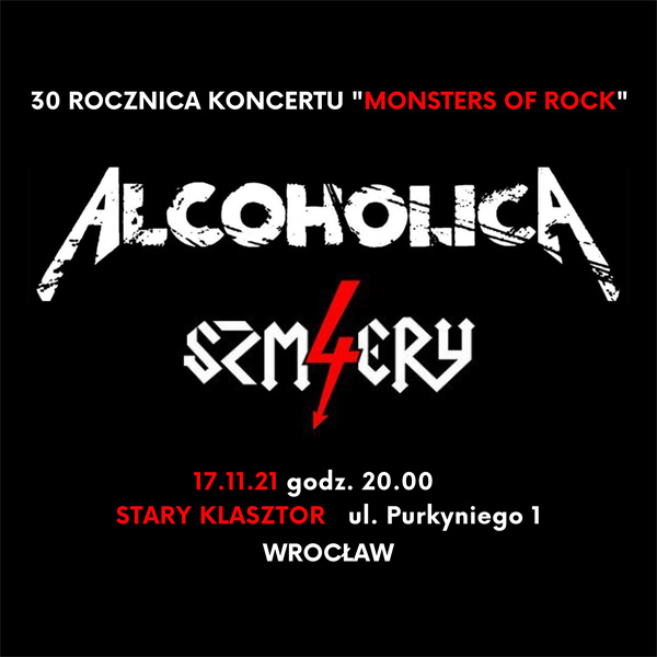 W trzydziestą rocznicę słynnego koncertu w ramach trasy "Monsters of Rock", kiedy Polskę po raz pierwszy odwiedziła słynna australijska formacja AC/DC, a Metallica zaprezentowała utwory ze swojej przełomowej "Czarnej płyty", dwa czołowe polskie "Tribute bandy" postanowiły uczcić tę pamiętną datę , wykonaniami oryginalnych set-list z tamtego dnia. "4szmery" i "Alcoholica" zaprezentują prawie 4- godzinny set, na którym nie może zabraknąć fanów prawdziwego rock'n'rolla.