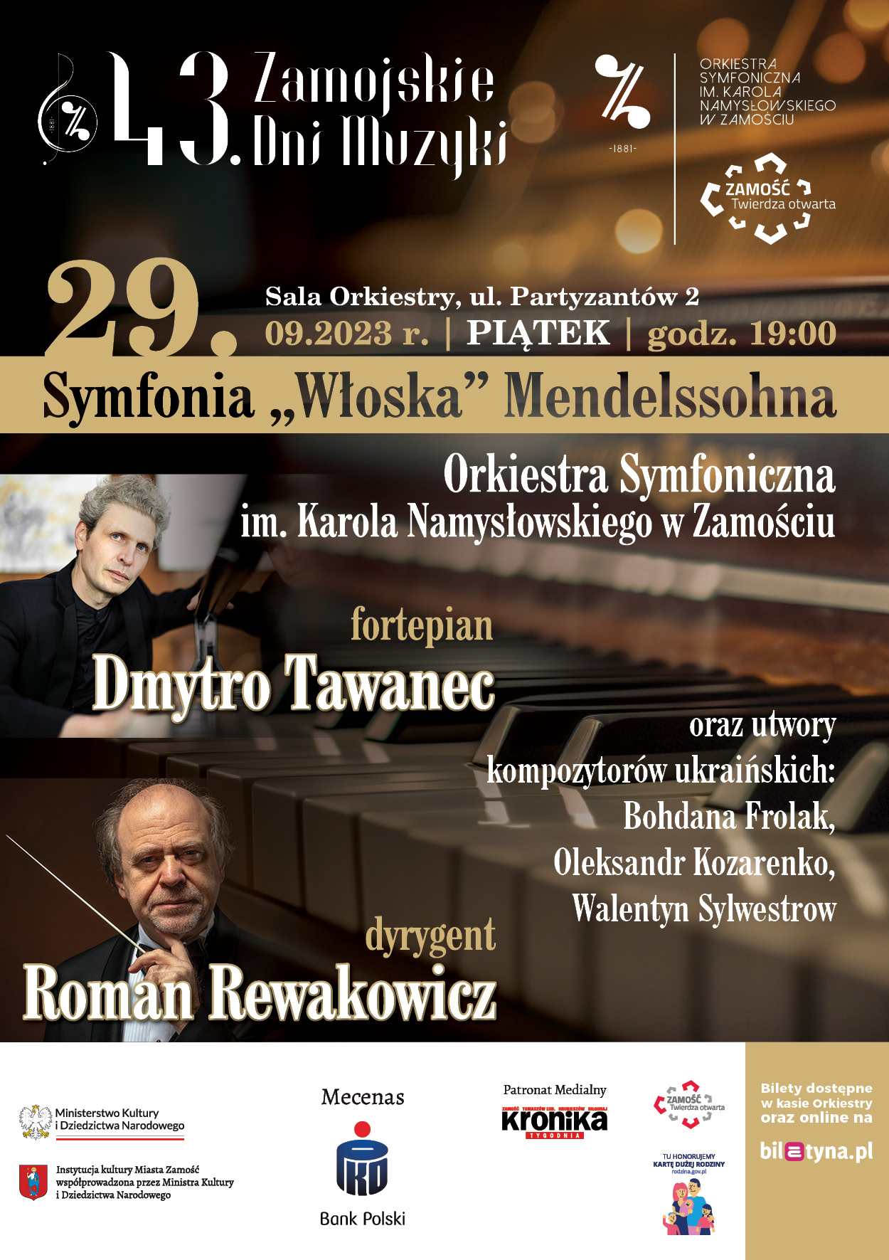 Sprzedaż biletów w kasie Orkiestry (ul. Partyzantów 2) do piątku w godz. 7.30 – 14.30.