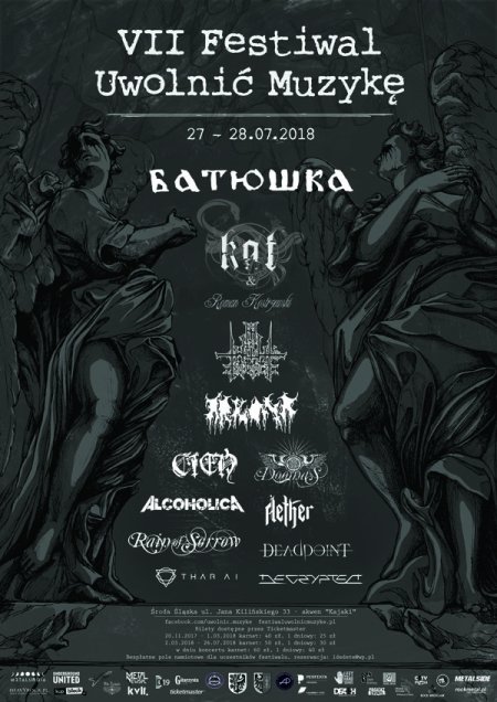 Festiwal "Uwolnić Muzykę " odbędzie się po raz siódmy w Środzie Śląskiej w dniach 27-28 lipca 2018, tradycyjnie nad akwenem "Kajaki". Impreza miała swoje początki w 2012 roku i z roku na rok rozwijała się umacniając swoją pozycję na festiwalowej mapie Polski. Organizatorzy festiwalu od początku postawili na mocne rockowo - metalowe brzmienia, zapraszając znane zespoły, oraz dając szansę do zaprezentowania się młodym mniej znanym kapelom. Przez festiwalową scenę w ubiegłych latach przewinęły się m.in. takie kapele jak : Closterkeller, Materia, Obscure Sphinx,Turbo czy Christ Agony. Siódma edycja jak zapowiadają organizatorzy festiwalu ma być przełomowa, bowiem do sprzedaży po raz pierwszy trafiły wejściówki, co ma na celu m. in. poprawę jakości lineupu jak i całego festiwalu. W roli headlinerów imprezy zobaczymy legendę polskiej sceny metalowej zespół Kat i Roman Kostrzewski oraz fenomenalną grupę black doom metalową Batushka która od dwóch lat odnosi sukcesy na całym świecie. Pozostałe do tej pory ogłoszone kapele to: In Twilight's Embrace, Doomas, Cień, Arkona , Alcoholica, Aether, Rain of Sorrow , Thar Ai , Deadpoint, Decrypted.