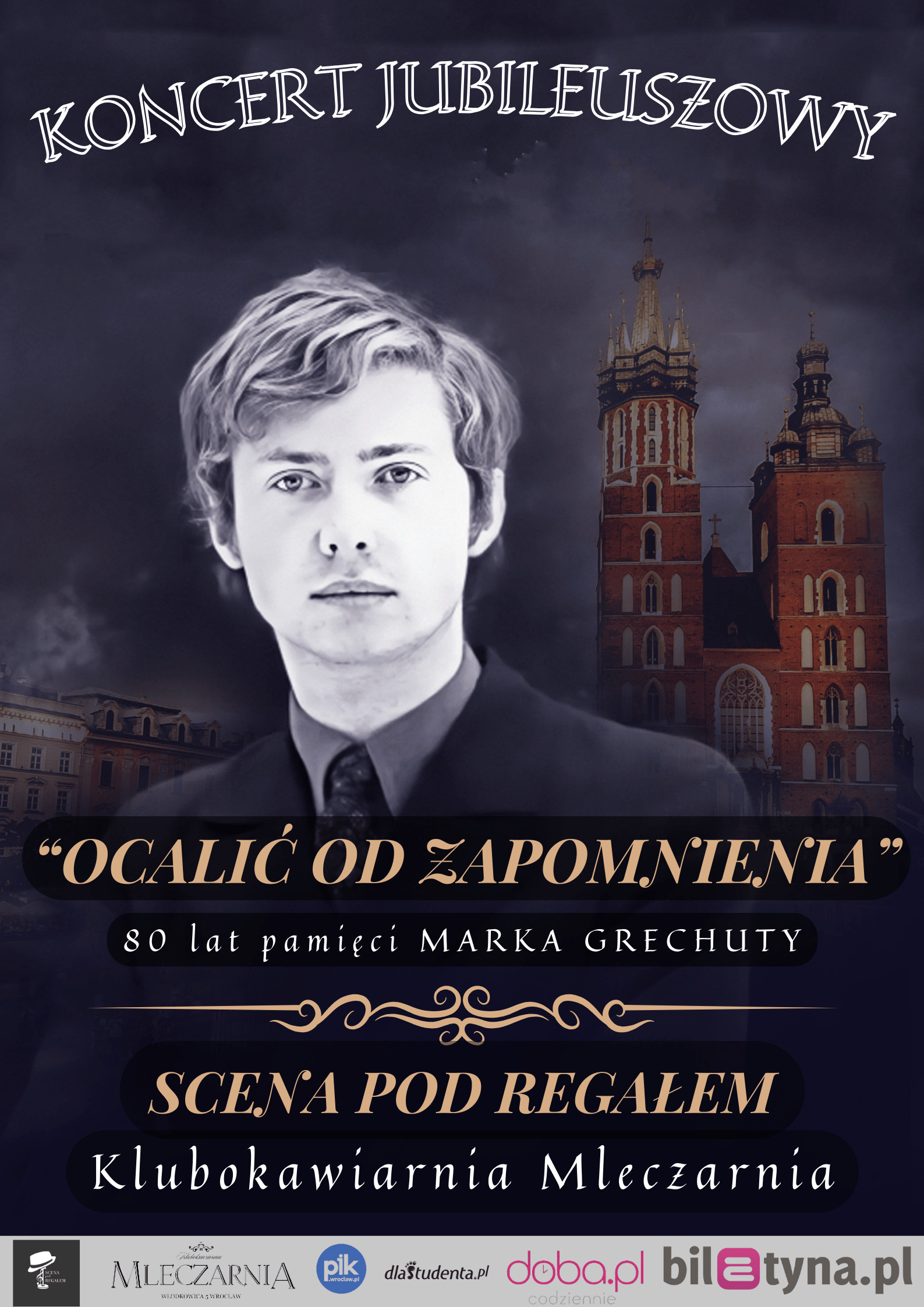 Drodzy Państwo, Zapraszamy na wyjątkowy, sentymentalny koncert z okazji jubileuszu 80 urodzin wielkiego mistrza MARKA GRECHUTY i początku ASTRONOMICZNEJ WIOSNY! W tym szczególnym roku 2025, kiedy to obchodzimy jubileusz 80 urodzin znakomitego poety, chcemy zabrać Państwa w muzyczną podróż po meandrach twórczości jednego z najwybitniejszych polskich artystów... człowieka o wielu talentach i niezwykle pięknej i złożonej wrażliwości- Pana Marka Grechuty. Koncert pod tytułem "wiosna wiosna ach to TY" to piękna wyprawa szlakiem największych przebojów artysty, który napisał dziesiątki znakomitych tekstów oraz pozostawił po sobie wspaniałe kompozycje. Jego dorobek artystyczny to skarbnica wiedzy, piękna i pasji z jaką oddawał się sztuce na co dzień. My przypomnimy nie tylko jego największe przeboje, ale również uraczymy Państwa licznymi historiami na temat życia mistrza. Recital odbędzie się naturalnie w piwnicznych wnętrzach wrocławskiej KLUBOKAWIARNI MLECZARNIA, nawiązujacych do krakowskich przestrzeni artystycznych, a zaprezentują się artyści wrocławskiej Sceny pod Regałem, którzy przypomną utwory mistrza, jednocześnie nadając im niepowtarzalny, indywidualny charakter dzięki własnej interpretacji tych jakże pięknych utworów. Zapraszamy do odwiedzenia nas i włączenia się we wspólną podróż, byśmy razem, wspólnie przenieśli się na krakowskie ulice z dawnych lat, gdzie co chwila wybrzmiewały takie utwory jak: "Nie dokazuj" "Będziesz moją Panią" Tango Anawa" czy choćby "Ocalić od zapomnienia', "Niepewność" czy choćby tytułowy utwór "Wiosna wiosna ach to TY" To jedyny, tego typu wydarzenie w regionie! Przybywajcie do nas tłumnie bo naprawdę warto 🙂