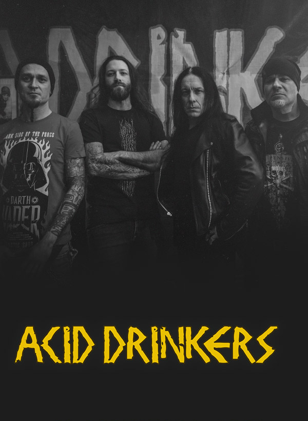 Acid Drinkers (po polsku Kwasożłopy) to zespół rock’n’rollowy założony przy butelce taniego wina w Poznaniu w 1989 r. Pełnoletni, a nawet dojrzały będący w rewelacyjnej formie nieprzerwanie od ponad 28 lat. Panowie psują robotę Kazimierzowi Wielkiemu- zastają miasta murowane, a zostawiają zgruzowane. Objechali Polskę wzdłuż i wszerz grając ponad 1500 koncertów. Wiele z nich dziesiątki tysięcy fanów pamięta do dziś. Na swoim koncie mają 17 płyt, które znacząco wpłynęły na polską scenę muzyczną. Acid Drinkers to czterech charyzmatycznych muzyków, czyli Titus, Popcorn, Ślimak i Bobby.