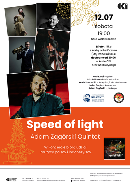 Koncert „Adam Zagórski – Speed of Light” to wyjątkowe wydarzenie muzyczne, które odbędzie się 12 lipca 2025 roku w Centrum Kultury w Izabelinie. Projekt, zrealizowany we współpracy artystów z Polski i Indonezji, promuje najnowszy album Adama Zagórskiego – perkusisty, kompozytora i producenta – będący hołdem dla legendarnego polskiego jazzmana Janusza Stefańskiego.