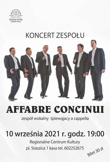 AFFABRE CONCINUI - zespół wokalny śpiewający a cappella, został założony w 1983r. w Poznaniu. Członkowie Zespołu są wychowankami dwóch znanych poznańskich chórów chłopięco-męskich S.Stuligrosza i J.Kurczewskiego. Zespół koncertuje w prestiżowych salach koncertowych największych ośrodków kulturalnych kraju, a także poza jego granicami m.in. w Algierii, Austrii, Chinach, Francji, Szwajcarii, Rosji, Kanadzie, Stanach Zjednoczonych, Turcji, Włoszech. Affabre Concinui występował podczas wielu festiwali muzycznych w Polsce i zagranicą ( m.in. Wratislavia Cantans, Festiwal Muzyczny w Łańcucie, Festiwal Adama Didura w Sanoku, Festiwal Muzyki Dawnej w Starym Sączu, Poznańska Wiosna Muzyczna, Festiwal Gwiazd w Międzyzdrojach, a także Al Bustan Fesival w Bejrucie, Schleswig-Holstein Musik Festival, Bolzano Festival). W sierpniu 2008 roku śpiewacy wystąpili na Festiwalu Fringe w Edynburgu (Szkocja) gdzie jako jedni z nielicznych zdobyli najwyższą notę przyznawaną przez recenzentów festiwalowych.