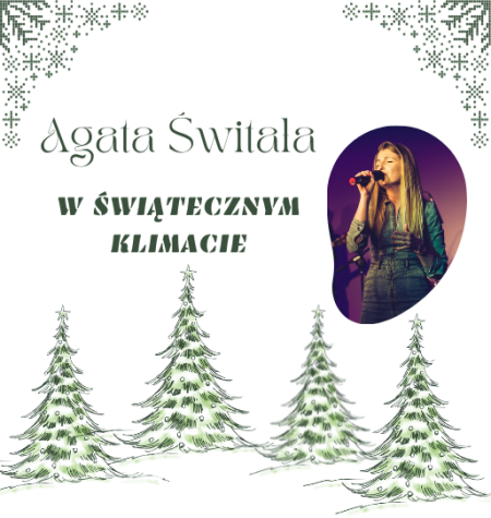 Serdecznie zapraszamy na koncert wypełniony świątecznymi piosenkami i tymi rozrywkowymi i tymi bardziej tradycyjnymi w wykonaniu wspaniałej Agaty Świtały - Rutkowskiej z towarzyszeniem zespołu.