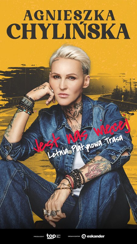 Agnieszka Chylińska Jest nas więcej Zapraszamy na niezapomniane koncerty ikony polskiej muzyki. Agnieszka Chylińska w ramach letniej platynowej trasy odwiedzi najpiękniejsze polskie amfiteatry i podbije serca fanów dobrej muzyki. Jest nas więcej to pierwszy taki koncert Agnieszki Chylińskiej w jej solowej karierze i niepowtarzalna okazja, by zobaczyć wszystkie muzyczne oblicza artystki. Wyrusz w muzyczną podróż przez największe hity, utwory sprzed lat w zupełnie nowych aranżacjach i współczesne przeboje. Poczuj, jak bardzo różnorodna jest muzyka Agnieszki Chylińskiej, a jak silne są jej stałe, nieodłączne elementy - charyzma, niepohamowane prawdziwe emocje i ogromny talent. Słowem, to Agnieszka Chylińska w jej muzycznym kalejdoskopie. I najlepsza forma uczczenia z fanami odbioru Platynowej Płyty!