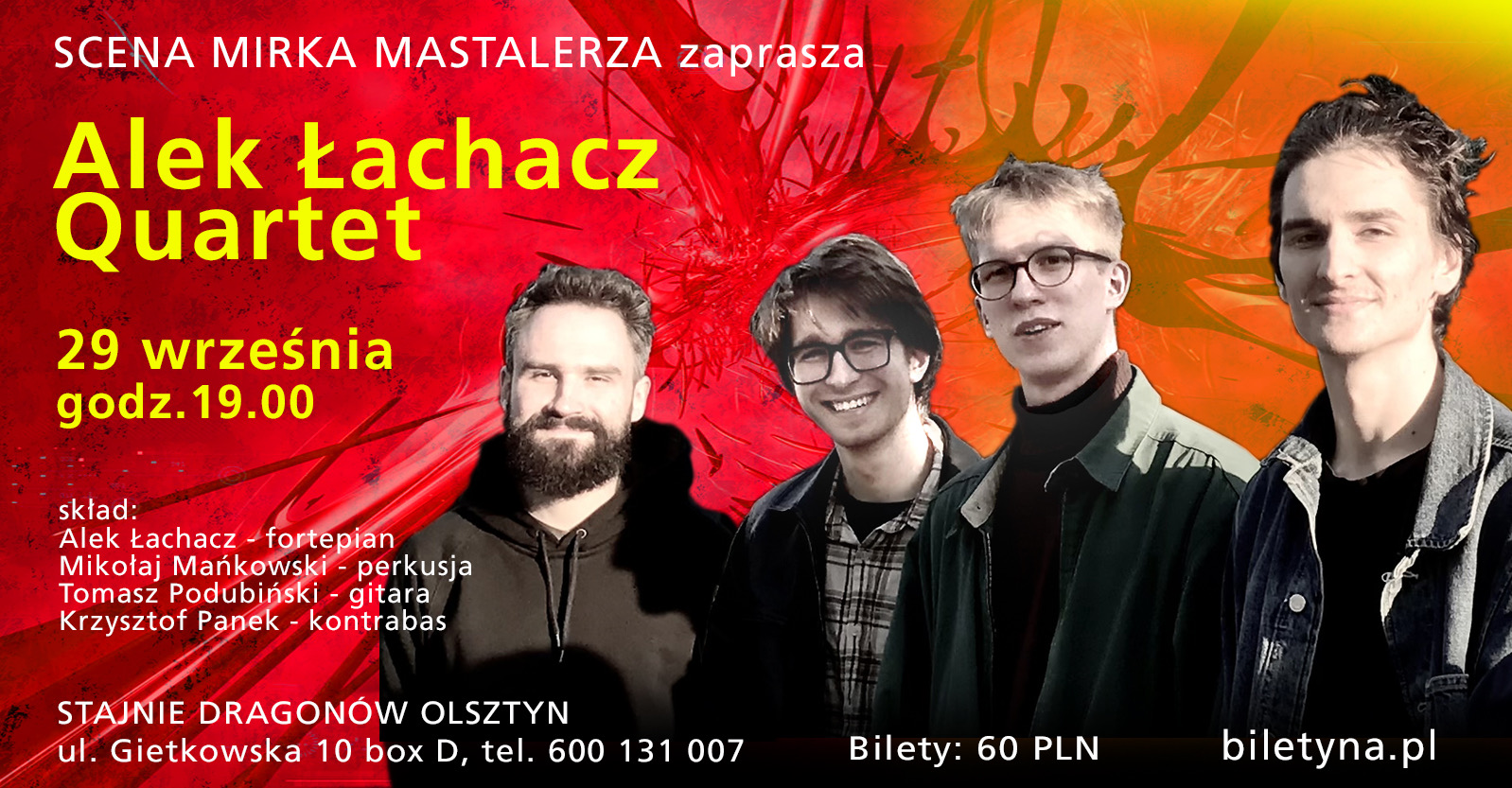 Aleksander Łachacz - pianista pochodzący ze Szczytna. Absolwent PSM Olsztyn i Policealnego Studium Jazzowego w Warszawie. Obecnie student Krakowskiej Akademii Muzycznej w klasiee prof. Marcina Banaszka. Finalista takich konkursów jak: Novum Jazz Festival i Ogólnopolskich Spotkań Młodych Pianistów Jazzowych im. Mieczysława Kosza. Inspiruje się gigantami ze sceny Cool Jazz.