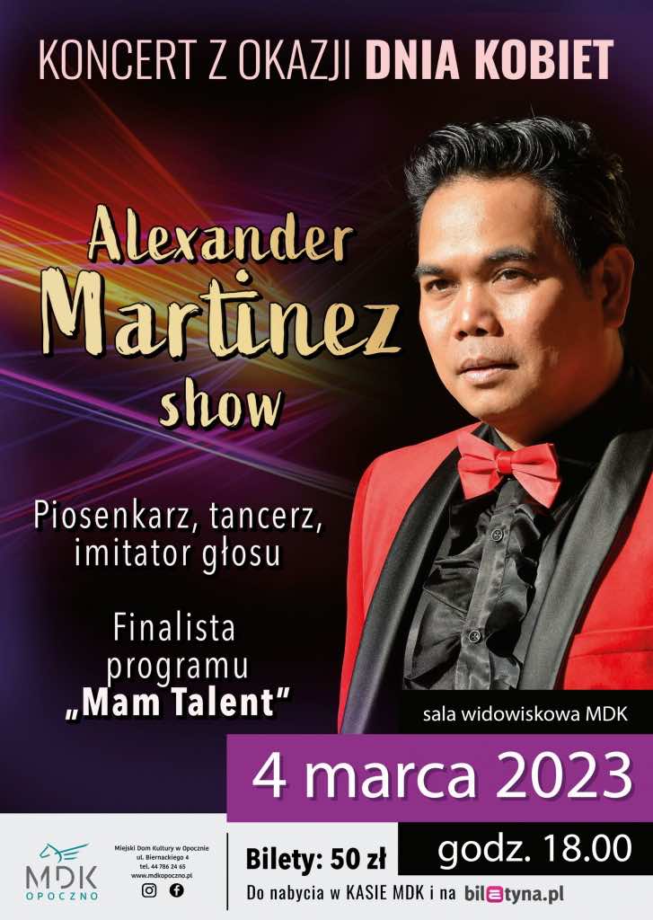 Miejski Dom Kultury im. T. Sygietyńskiego w Opocznie serdecznie zaprasza na wyjątkowy koncert z okazji Dnia Kobiet „Alexander Martinez Show”, który odbędzie się już 4 marca (sobota), w sali widowiskowej MDK, o godz. 18.00.