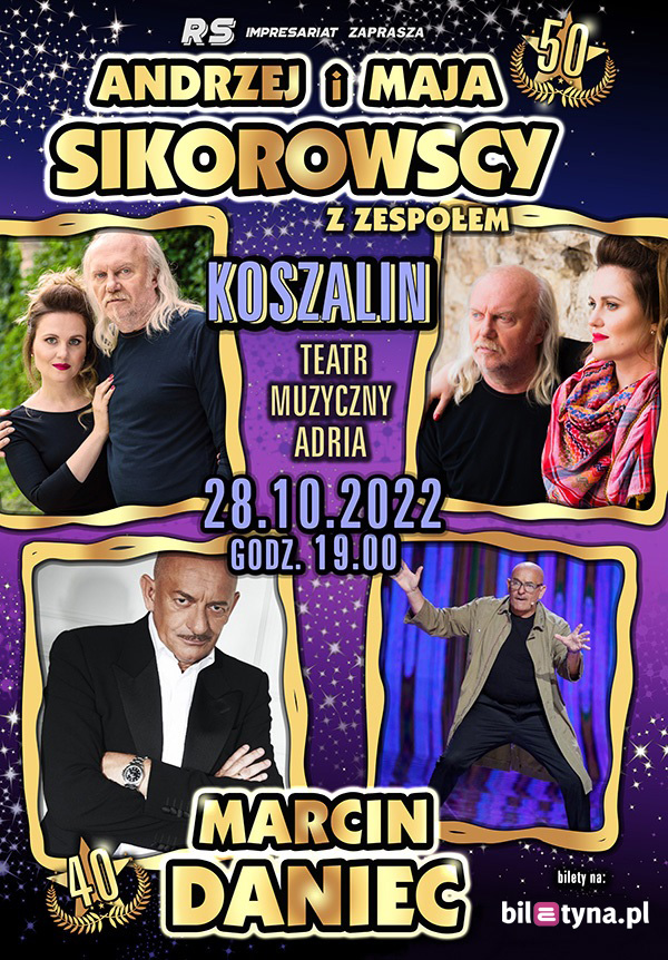 Koncert Specjalny. Dlaczego specjalny? Po pierwsze dlatego, że będzie rzadka okazja, aby usłyszeć wszystkie przeboje Andrzeja Sikorowskiego takie jak "Bardzo smutną piosenkę retro", "Nie przenoście nam stolicy do Krakowa", czy "Warto wierzyć". Kompozytor wraz z córką Mają oraz znakomitym zespołem zaprezentuje 90 minutowy program. Po drugie, kilka "numerów" wykonają wspólnie Andrzej Sikorowski oraz legenda polskiego kabaretu Marcin Daniec, wspominając przy okazji swoje wspólne spotkania, występy, anegdoty. Koncert jest specjalny także dlatego, że udało się zaprosić do wspólnego występu wielkie gwiazdy polskiej estrady, które na co dzień świetnie się znają, bardzo lubią i szanują. Publiczność może być pewna wydarzenia artystycznego na najwyższym poziomie. Oczywiście Marcin Daniec wystąpi z fragmentami swoich recitali, Cie jasny pieron...i już nie może się doczekać. A zaprasza tak: Koszalin, Koszalinek, Koszaliniuniuś, my się po prostu musimy spotkać ! Pośpiewam