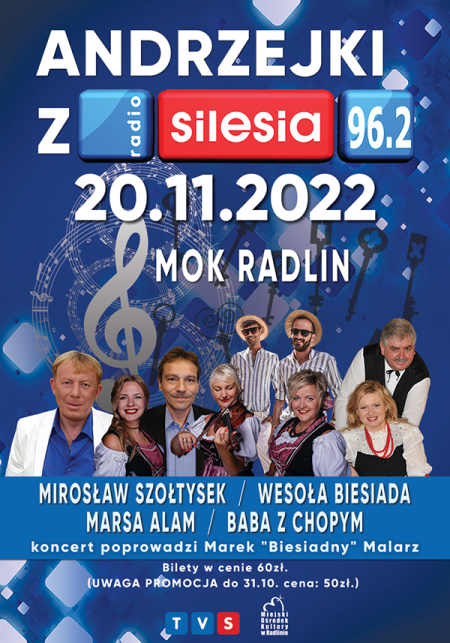 Kochani Państwo już 20.listopada – w niedzielę – o 16:00 zapraszamy do MOK Radlin (ul. Mariacka 9, 44-310 Radlin) na ANDRZEJKI Z RADIEM SILESIA.