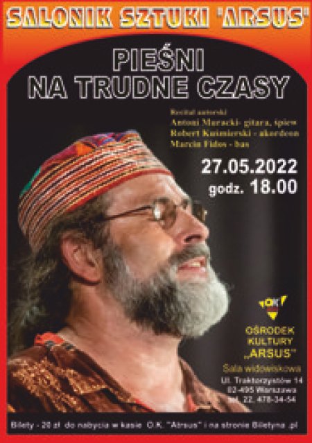 Recital autorski - "PIEŚNI NA TRUDNE CZASY" Antoni Muracki – pieśniarz, poeta, kompozytor i muzyk. ROBERT KUŚMIERSKI - akordeon mARCIN FIDOS - bas