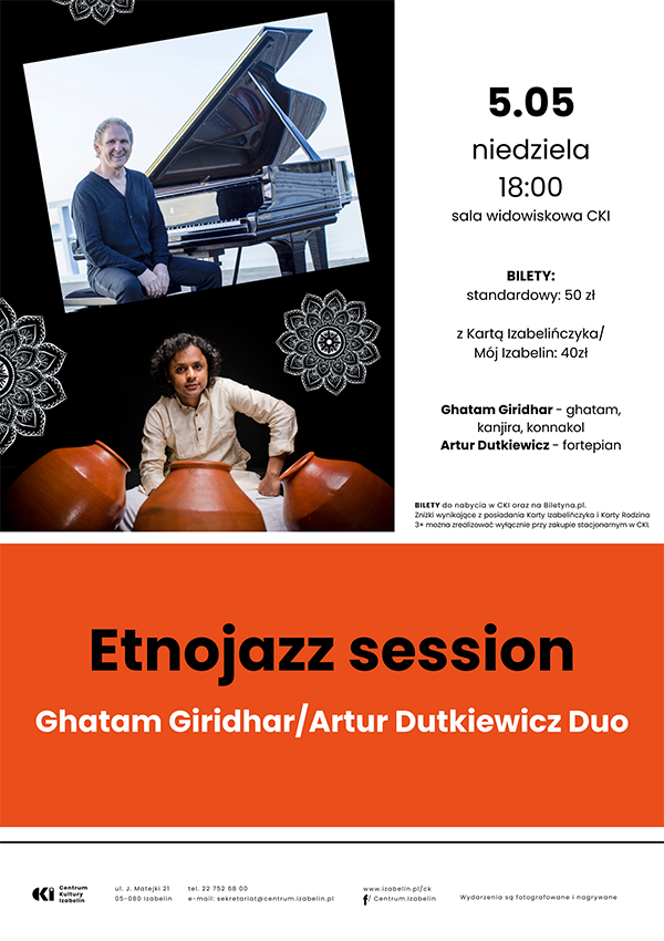 Ghatam Giridhar - światowej sławy mistrz gry na hinduskim instrumencie ghatam w duecie z Arturem Dutkiewiczem - wirtuozem fortepianu, „ambasadorem polskiego jazzu”.