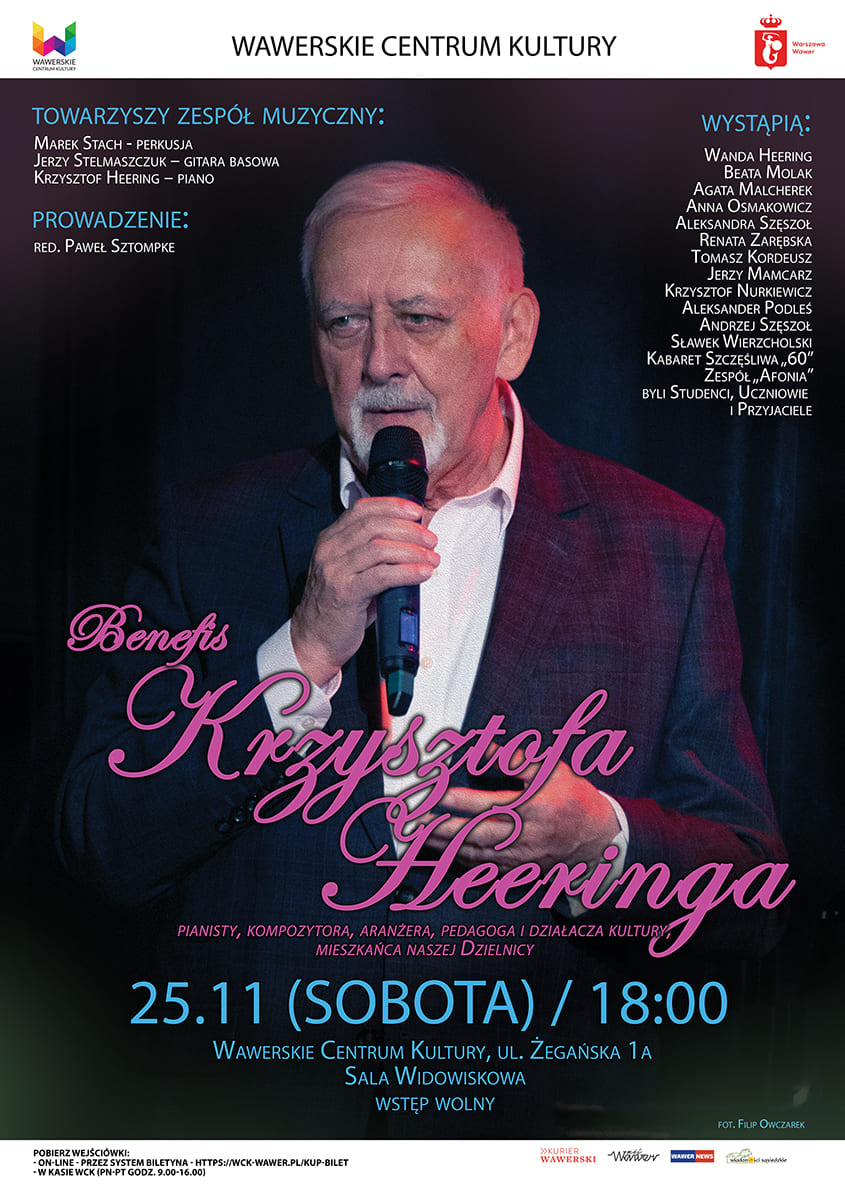 Zapraszamy na BENEFIS KRZYSZTOFA HEERINGA - pianisty, kompozytora, aranżera, pedagoga i działacza kultury, mieszkańca naszej Dzielnicy.