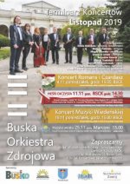Zapraszamy na koncerty w wykonaniu Buskiej Orkiestry Zdrojowej, które odbędą się w Buskim Samorządowym Centrum Kultury oraz w Sanatorium Marconi.