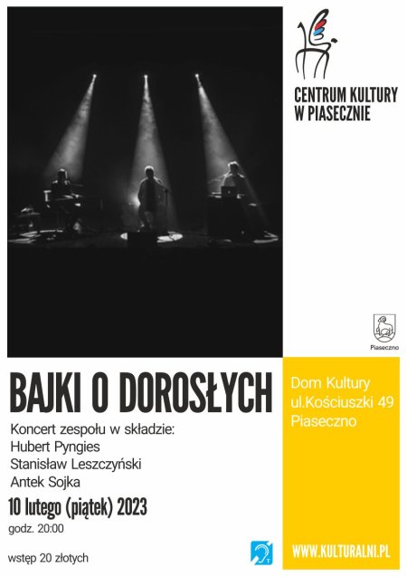 Obecnie zespół nagrywa nowy album a premierowe utwory włącza do repertuaru koncertowego. Występ „Bajek” sprawdzi się w sali koncertowej, na dużych scenach, ale również dzięki stosunkowo niewielkim wymaganiom technicznym w niestandardowych przestrzeniach. Zespół zawsze pracuje z własnym realizatorem dźwięku. Prowadzimy fanpage „Bajki o dorosłych” na Facebooku i Instagramie, gdzie otrzymujemy żywe i zaangażowane reakcje od słuchaczy, oraz liczne zapytania o koncerty na terenie całego kraju.