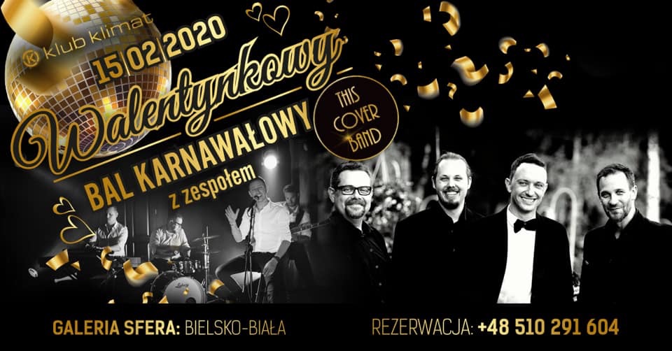 Wielki, walentynkowy bal karnawałowy z muzyką na żywo w wykonaniu zespołu This Cover Band już 15.02 w Klubie Klimat!